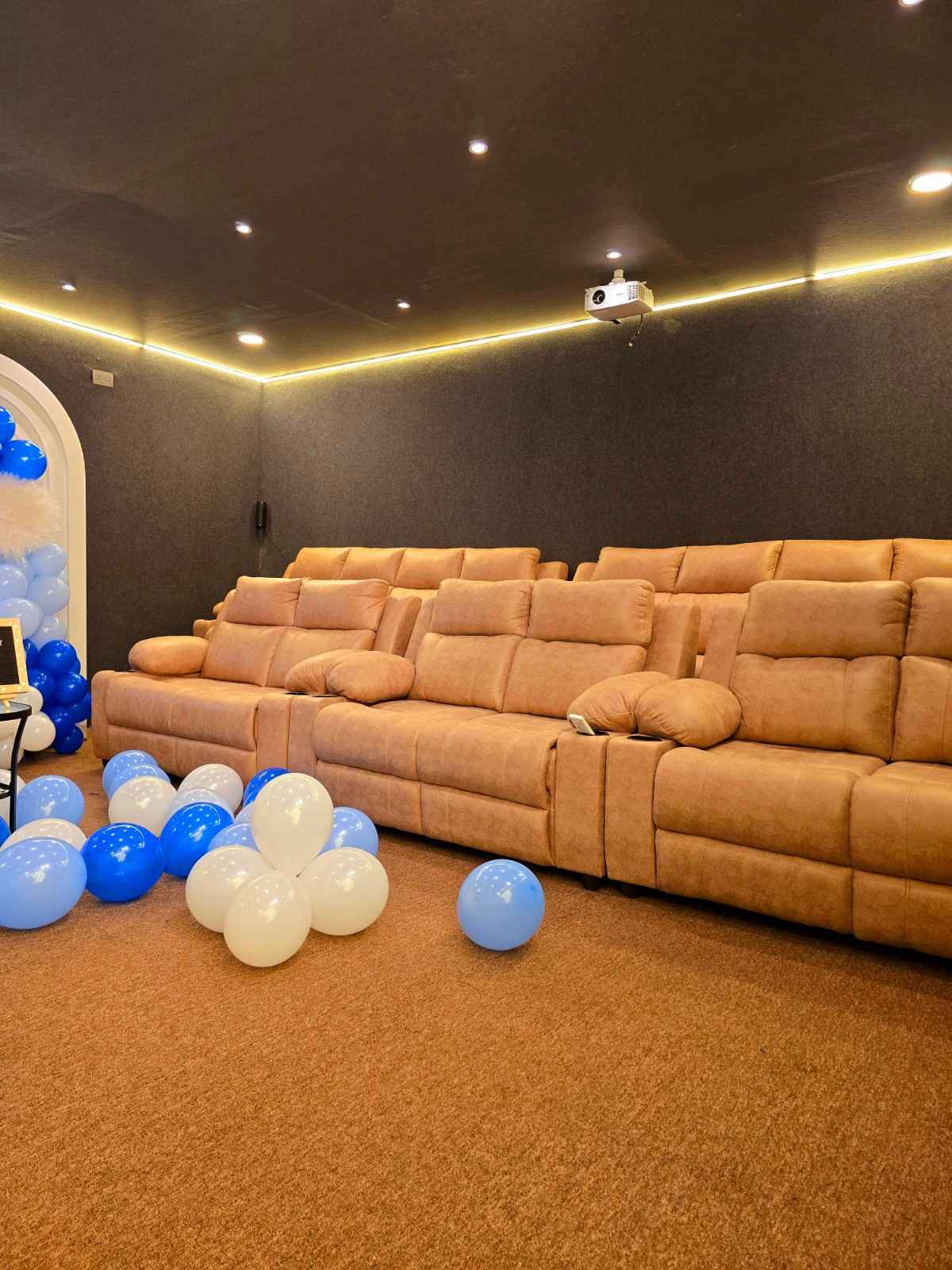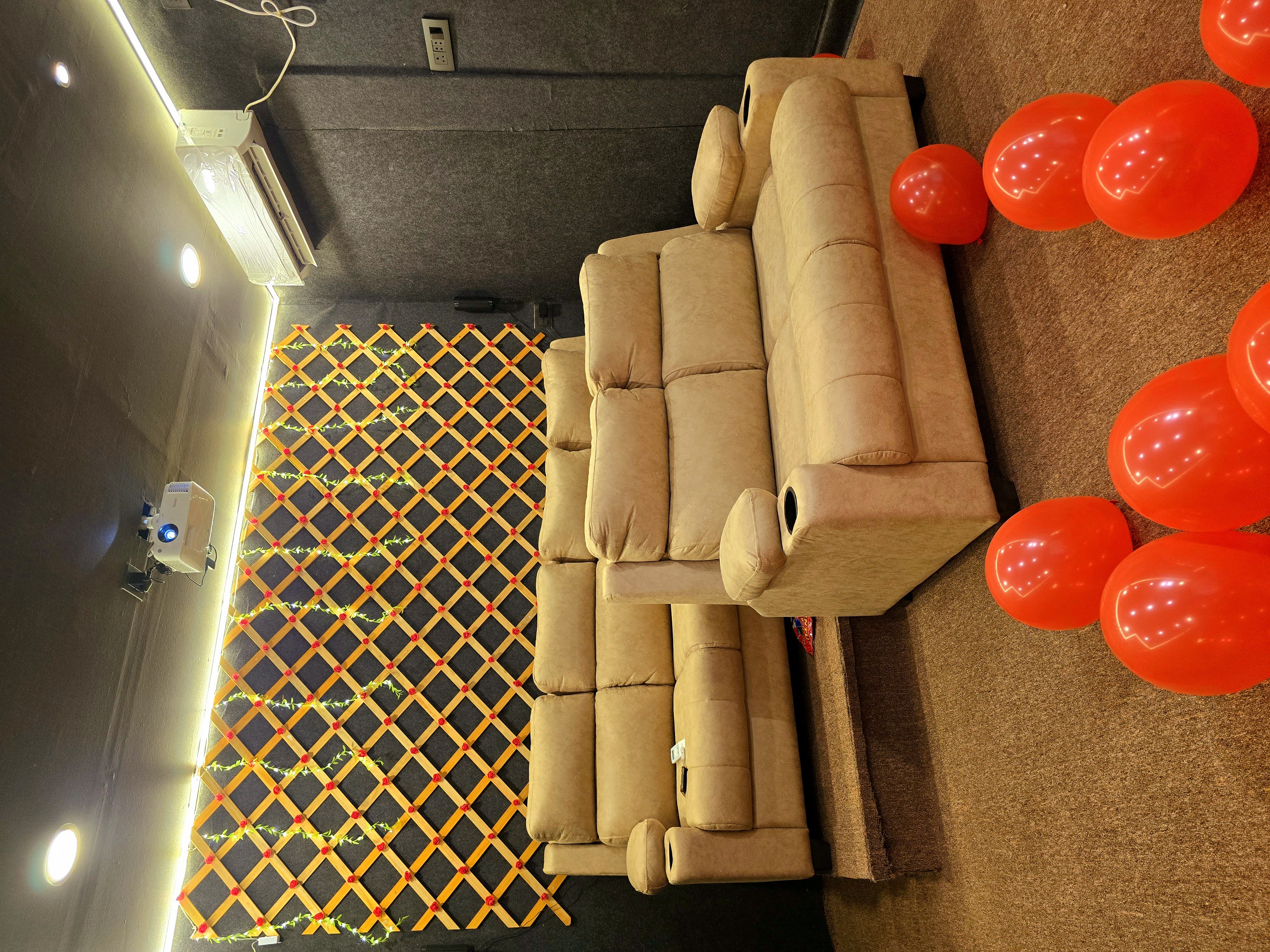 ₹1899 for 6 or less people (Rs 299 per extra person), Our theatres are equipped with 120 inch enhanced 4k Video. Powerful Dolby atmos sound system. Ideal for couples, family & friends